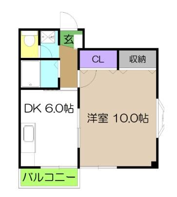 ゆったり一人暮らしにオススメ!全室フローリングの1LDK収納も2ヵ所にあり、使い勝手の良い間取りです。