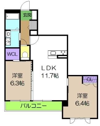 NEW ベレオ弓張月 旭町一丁目の2LDK賃貸アパート