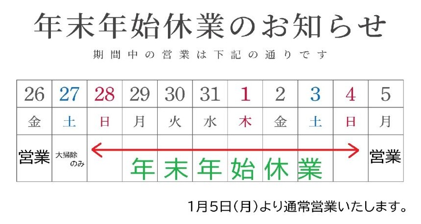 年末年始休業のお知らせ2025-12-24